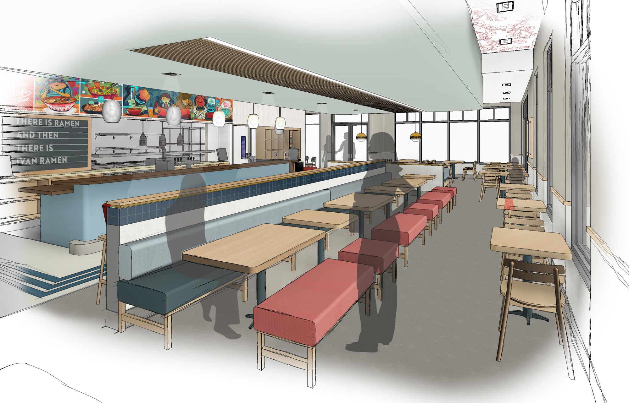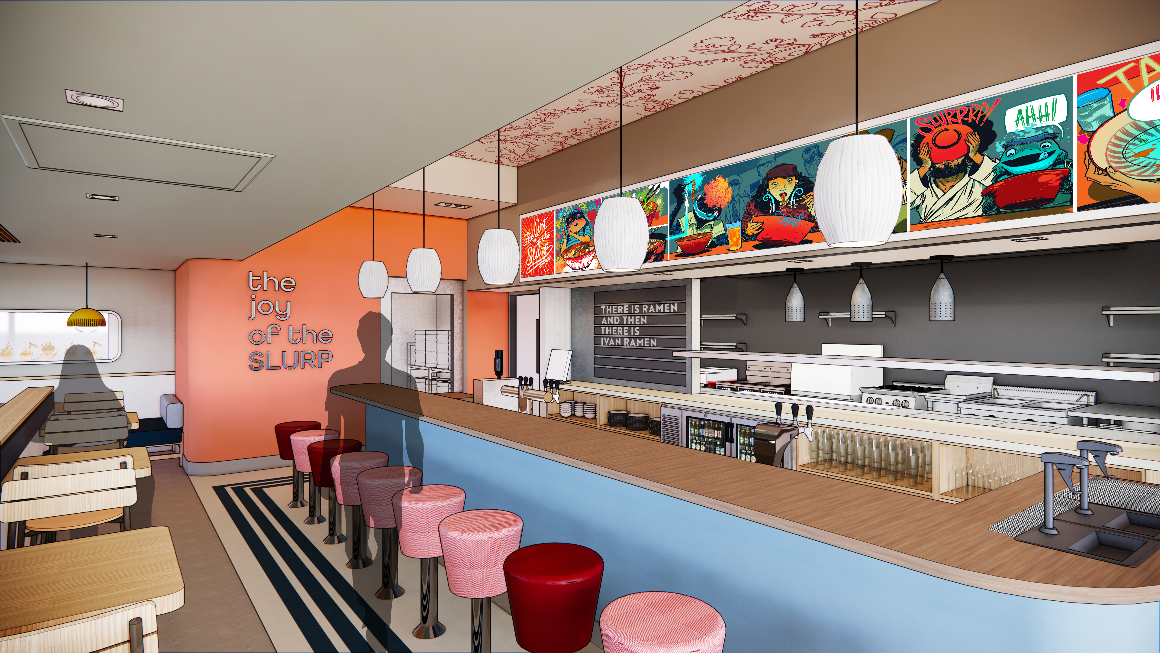 Owned and operated by a celebrity chef, Ivan Ramen is a Tokyo-inspired ramen shop with a quirky New York vibe. In designing a new prototype for the fast casual concept, we focused on creating a fun, welcoming, replicable space that feels both familiar and exotic. We did this by highlighting the unique food preparation and beverage options, standardizing processes, optimizing kitchen efficiencies and developing a kit-of-parts that maintains the urban feel in any location. We developed multiple layouts and a variety of different sized restaurants, allowing us to experiment with what felt right for the concept. The 3,000 sf option was selected for further development and the prototype will be applied to the next location to open.